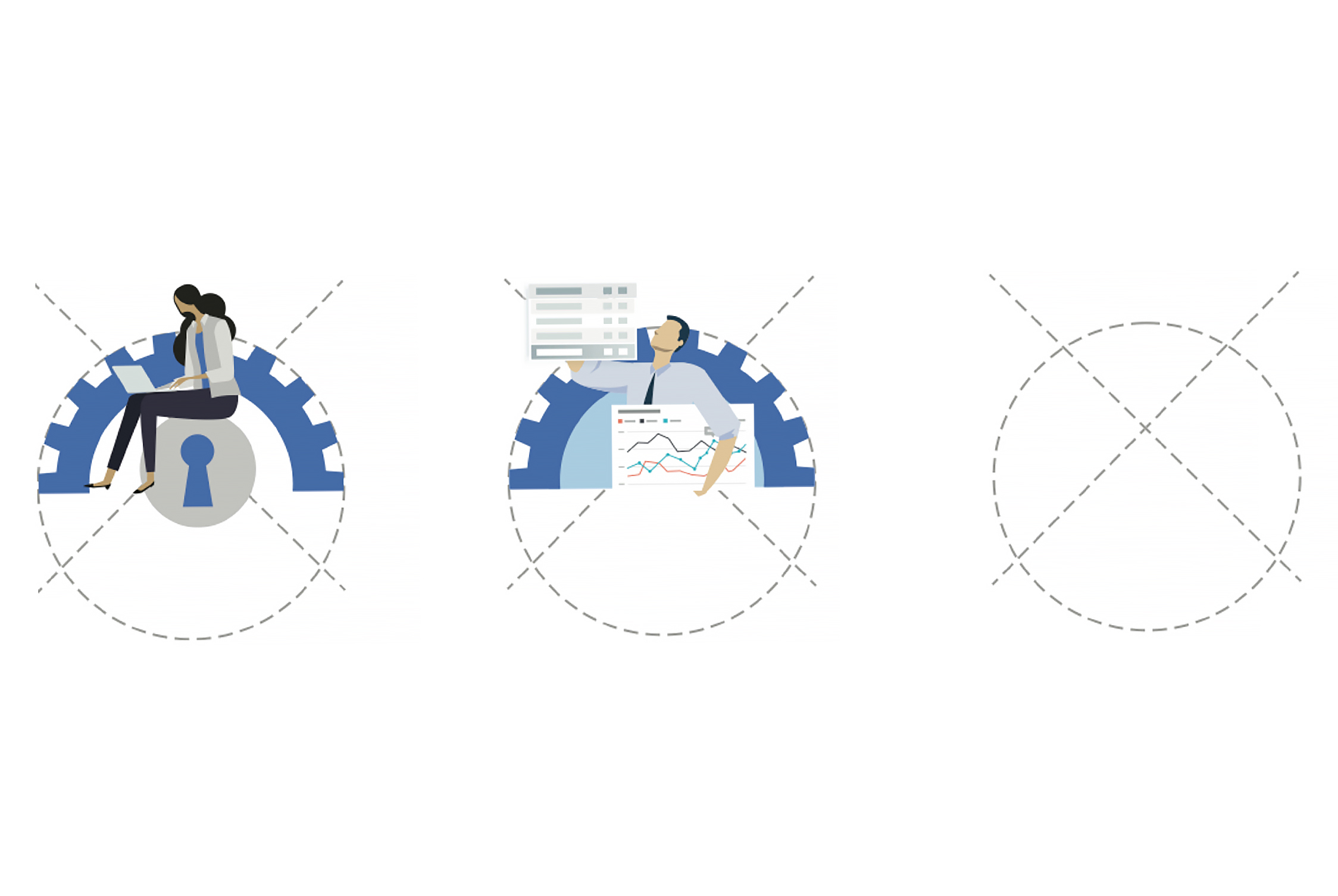 I created a template for our first round of illustration design, to give direction in color, weight and proportions.