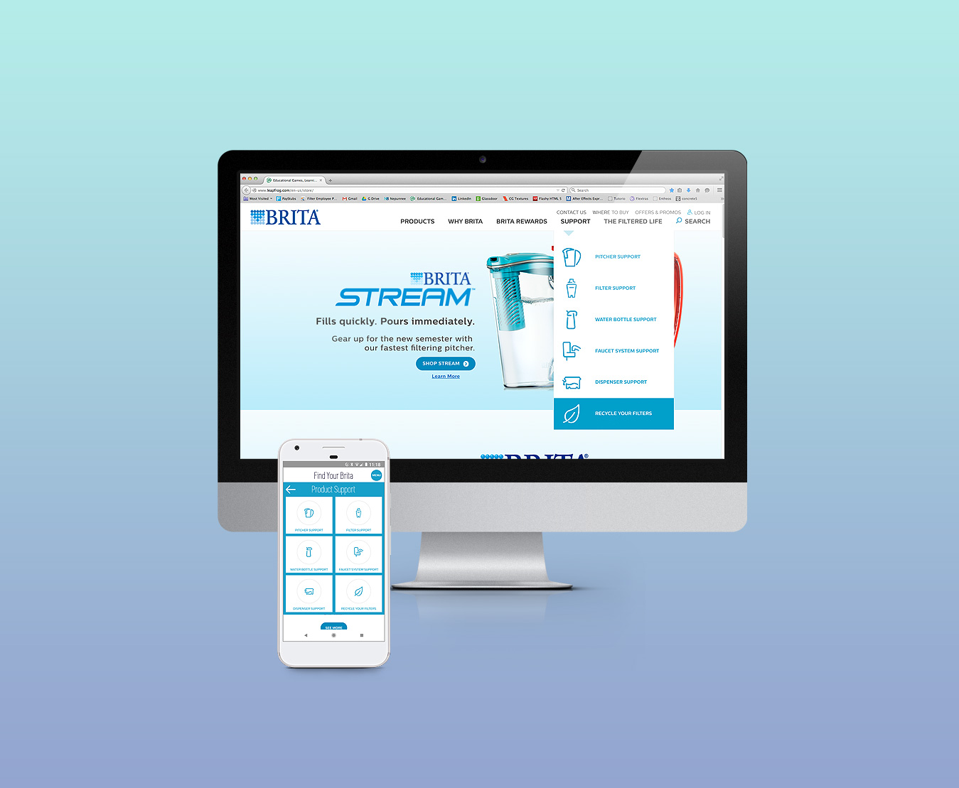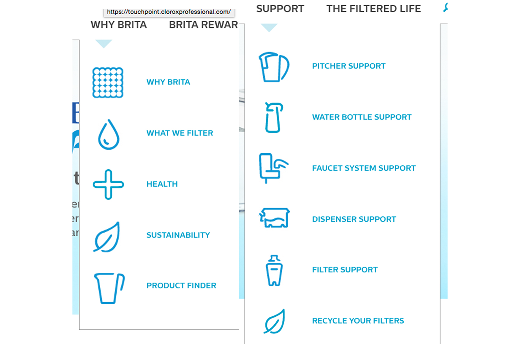 Brita was updating their navigation system. This entailed taking existing iconography, previously designed as stand-alone design elements, and updating them to a cohesive system. Seemed like a pretty straight-forward task but it did prove to be a little tricky given the various sizes and ratios to start with.