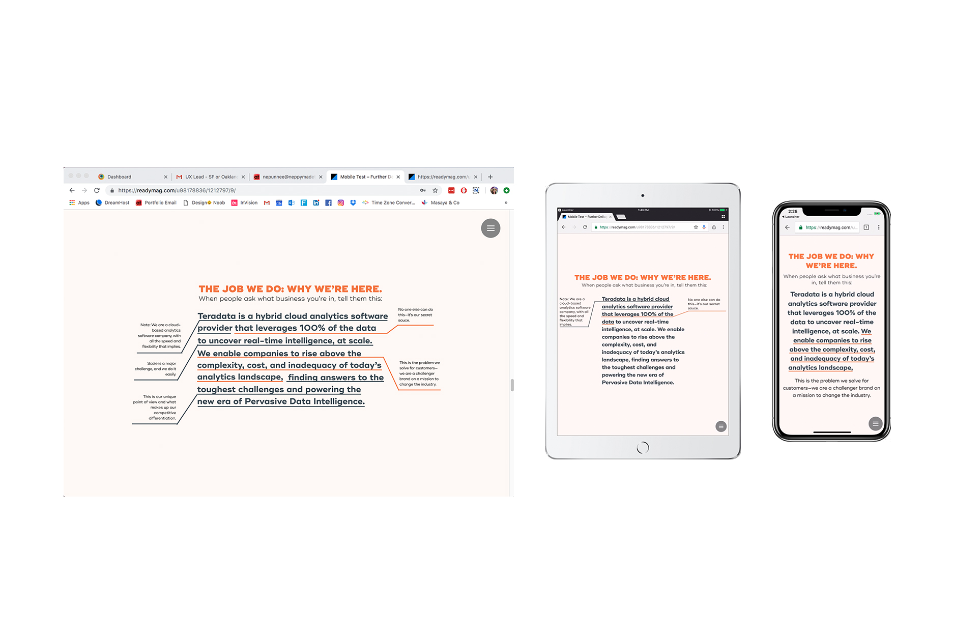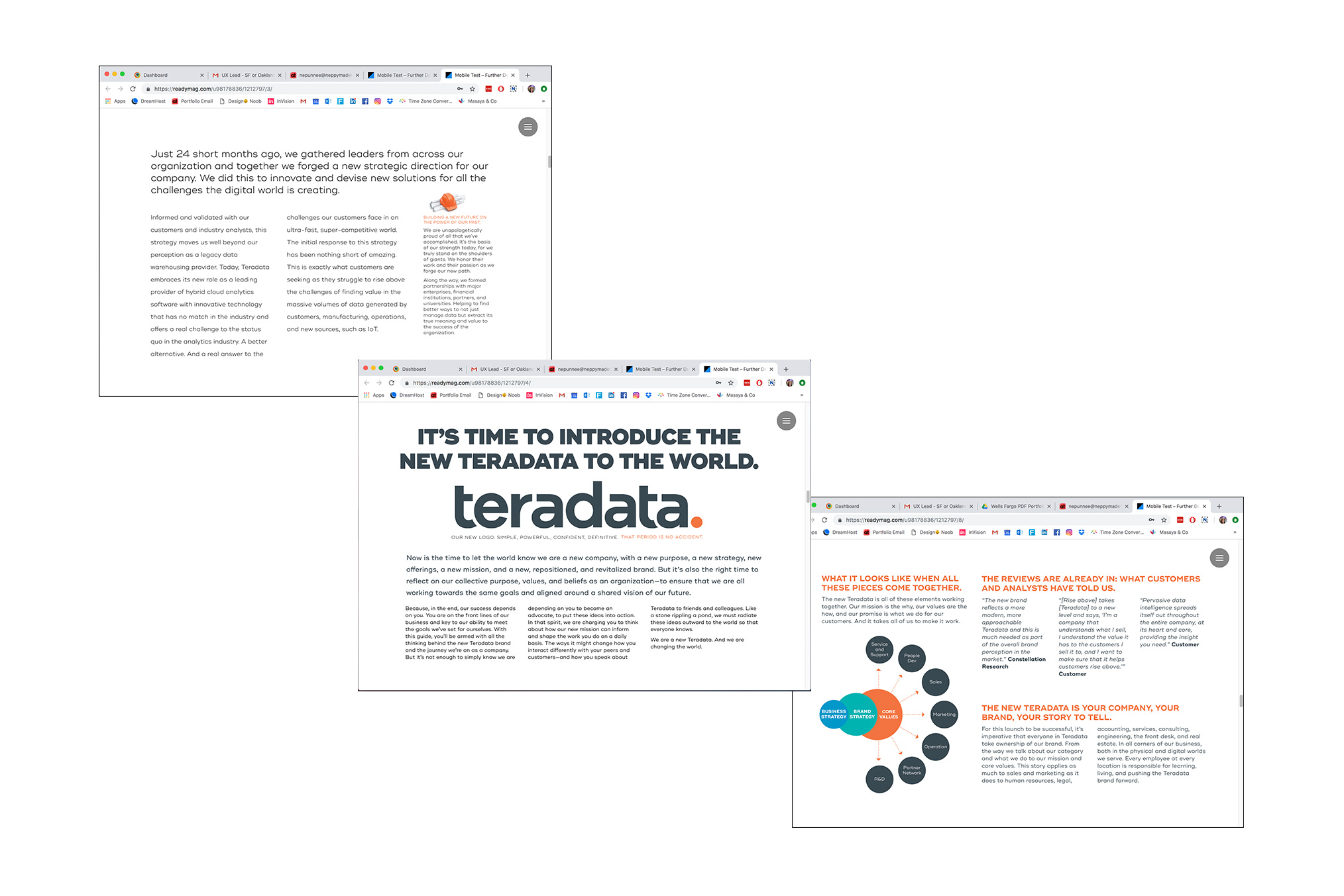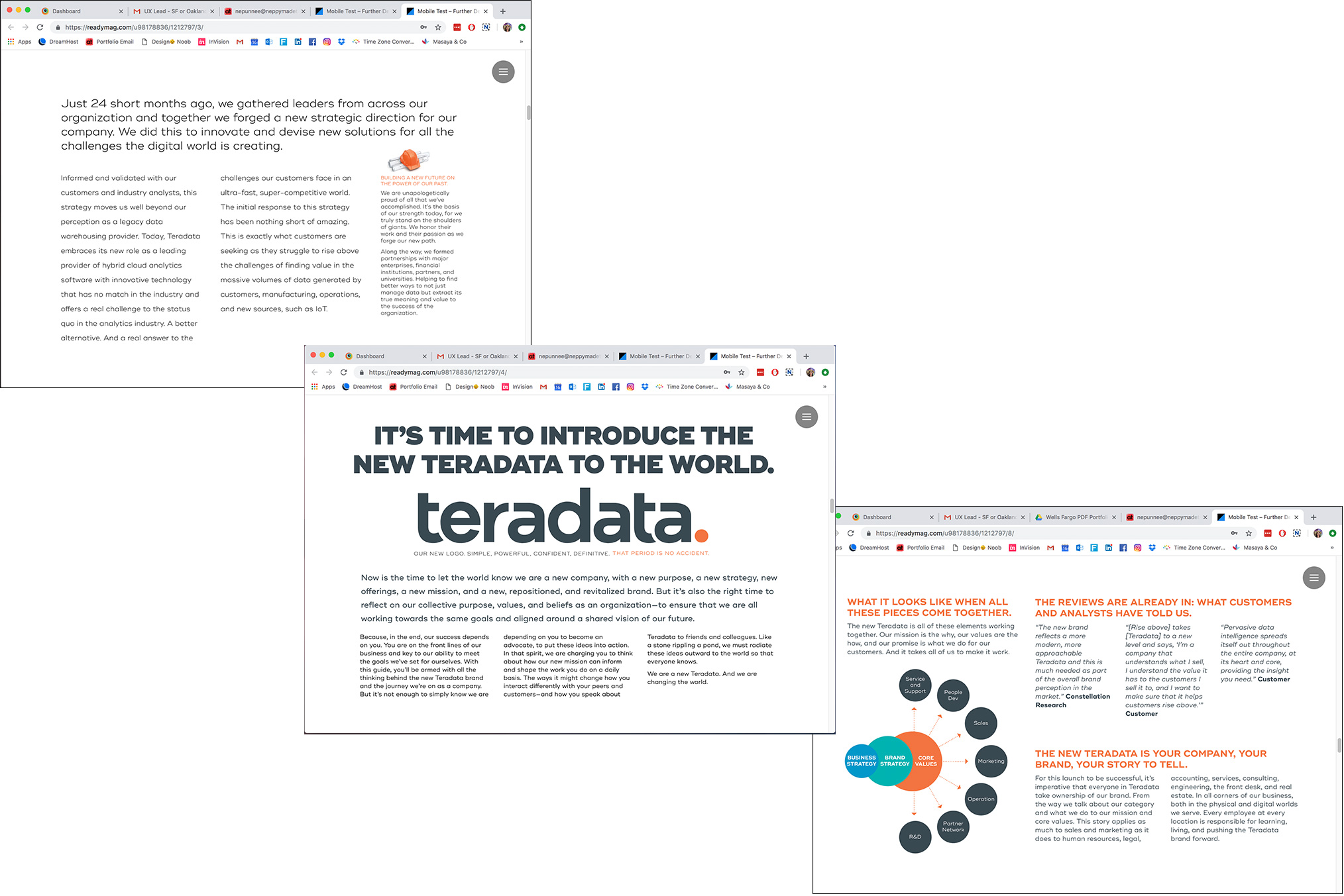 I had the opportunity to work on Teradata while at a design agency in Berkeley, California. After initial direction from the account manager and producer I was given the digital files of the print book and set off to learn and design.